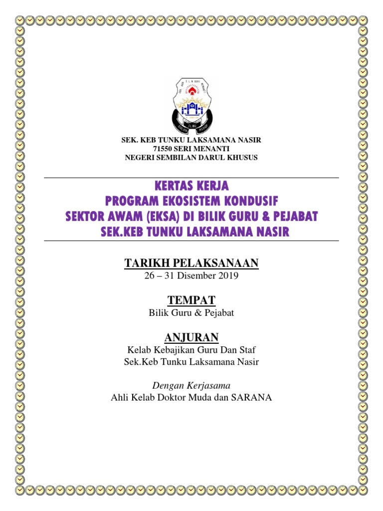 Amalan ini dapat mewujudkan persekitaran kerja yang berkualiti secara. Vi Gambar sebelum dan selepas amalan EKSA perlu dipaparkan. Contoh kertas kerja berikut adalah penting sebagai rujukan anda yang ingin melakukan sesuatu seminar kerja atau projek.